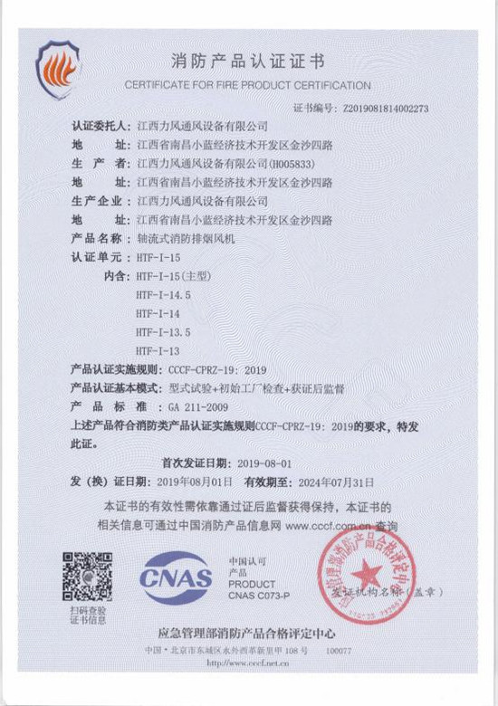 力風通風設備榮譽資質(zhì)